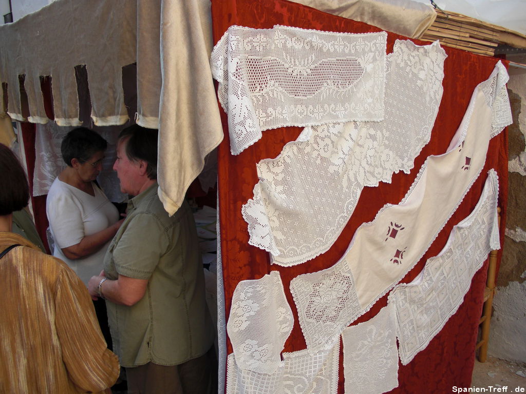 Iberischer Markt von Sant Miquel in Alcanar. Stickereien am Markt.