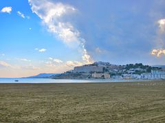Ein Regenbogen direkt neben bzw. hinter der Halbinsel Peñíscola.