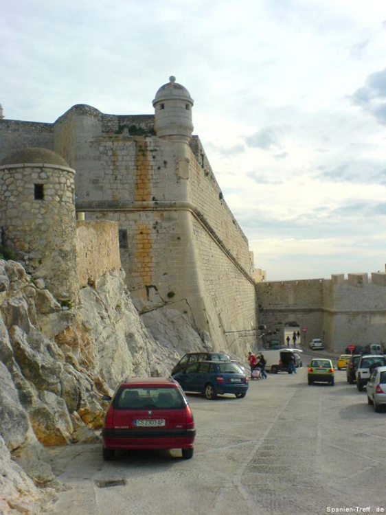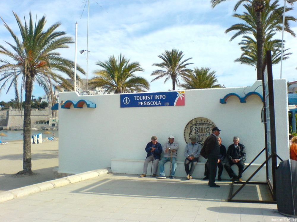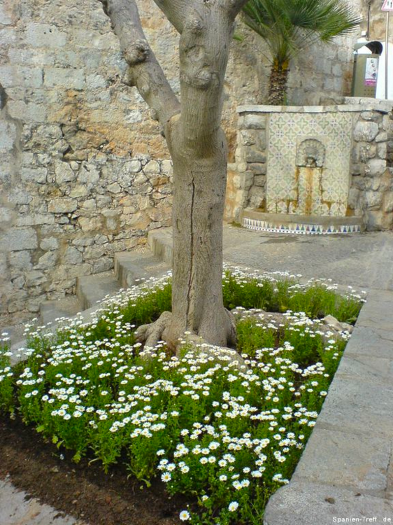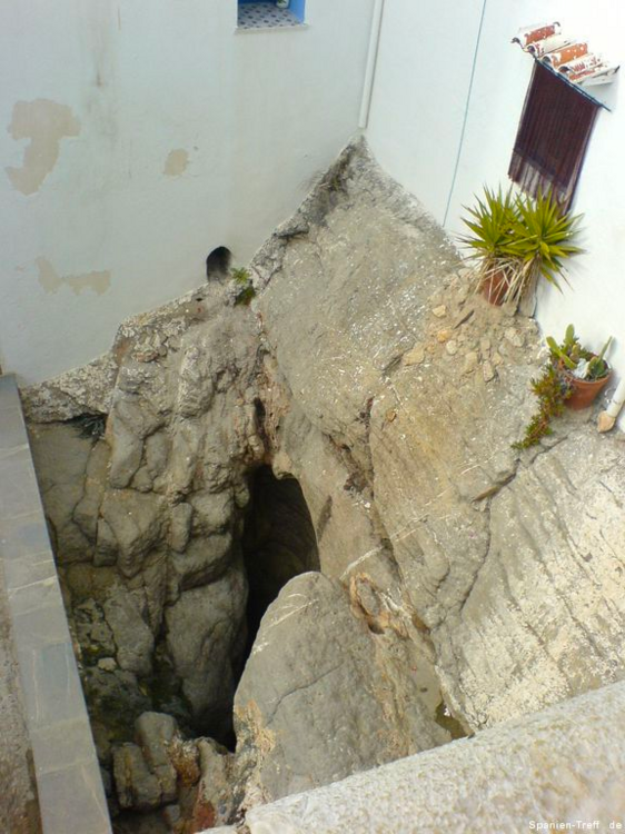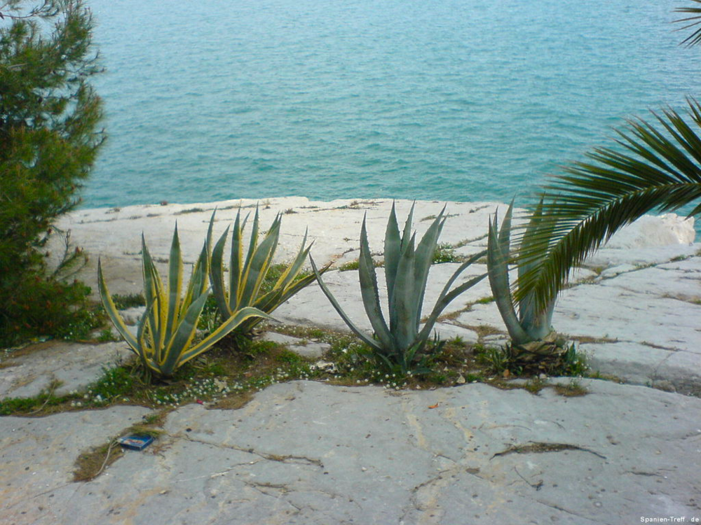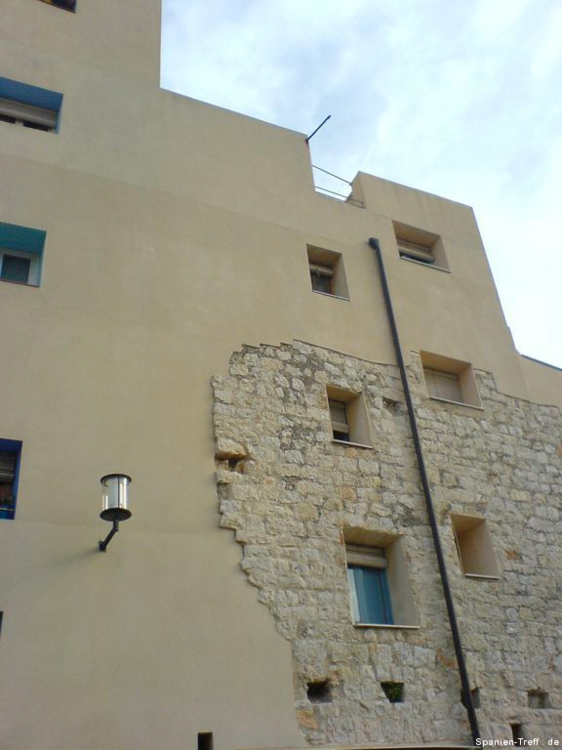 Peñíscola liegt knapp sieben Kilometer Südlich von Benicarló und ist ein beliebtes Ausflugsziel. Hier möchte ich euch auf einen kleine Rundgang durch Peñíscola mitnehmen. Über die Burg von Peñiscola hatte ich schon einmal berichtet, aber nun nehme ich euch mit zu einem Rundgang auf den Felsen und ein wenig um die Burg herum. Wenn man sich der Stadt nähert, erkennt man sofort, dass es sich um eine Halbinsel handelt, bzw einem Fels in unmittelbare Strandnähe, den die Menschen in eine Stadt verwandelt haben. Vom Norden her kann man sich dem langen Strand von Benicaró aus nähern. Der Fels und die Altstadt von Peñíscola darauf, ist sofort zu sehen. Peñíscola vom Strand aus Peñíscola und Strand Ein moderner Brunnen ziert den neuen Platz am Strand von Peñiscola, welcher zugleich auf Tiefgarage ist. Die im zweiten Bild hinter dem Brunen zu sehende Eisdiele von Häagen-Dazs ist dort leider nicht mehr zu finden, obwohl sie dort Jahrelang war. Moderner Brunnen vor Peñíscola Moderner Brunnen vor Peñíscola Das schöne daran, wenn man derartige Orte auch mal außerhalb der Touristischen Hochzeit besucht, ist das Fehlen von eben dieser Touristn. Dies machen sich auch die alten Leute zu nutzen und können in ruhe beim Touristenzentrum sitzen. Tourismus Information von Peñíscola Im Sommer drängen sich hier Körper an Körper im Strand. Man möchte da fast kaum glauben, dass darunter so viel Sand zu sehen ist. An diesem wurde, wie auch in der Stadt selbst, ein Teil des Historienfilms El Cid gedreht, bei dem 1961 Charlton Heston und Sophia Loren die Hautprollen spielten. Von einigen der Älteren dort weiß ich, wie sie sich an die damaligen Dreharbeiten in ihrer Jugend erinnern können. also bitte nicht vergessen, dort wurde einer der großen Historienfilme, aus der guten alten Hollywood Zeit gedreht. Blick vom Strand von Peñíscola in Richtung Benicarló Strand von Peñíscola und Blick aufs Meer Strand und Stadtmauern von Peñíscola Kommt man über die Straße am Strand in die Stadt befindet man sich auf dem Hauptplatz (plaza) und sieht die beeindruckende Stadtmauer, welche zahlreichen Belagerungen Stand gehalten haben. Stadtmauer von Peñíscola Die Böden sind dort mit Steinen verziert, was zum einen das Gehen etwas holpbrich macht, irgendwie auch Halt gibt, aber mit modernen Schuhen und glatten Sohlen kann man an den glatten Steinen und den teilweise sehr steilen Auf- und Abwegen, gefährlich abschrutschen und hinfallen. Bei den älteren Steinen erkennt man sogar gut die Furchen der Räder von den Karren. Steinverzierter Boden von Peñíscola Bei all den Löchern in der Stadtmauer, habe ich mich immer gefragt, ob da nur einzelne Steine sich heraus gelösst haben oder ob es doch Spuren aus all den Belagerungen der Vergangenheit sind und der unzähligen Steinschleuder und Kanonenkugel-Einschläge? Stadtmauer von Peñíscola Wir gehen aber nicht hier direkt rein, sondern nehmen den Eingang, sozusagen über die andere Meeresseite, wo der Hafen ist. Dort erkennt man auch gleich am Fuße der Stadtmauer, das große Waschbecken. Blick zum Hafen von Peñíscola und Waschbecken Hier sieht man einmal genauer das Waschbecken aus Stein, an dem die Frauen früher die Wäsche wuschen. Auch sieht man im Hintergrund noch einen kleines Becken aus Stein in der Mauer. Stein-Waschbecken von Peñíscola Nun kommen wir zum Stadttor der Stadt und gehen hier diesen Weg hoch. Stadttor von Peñíscola Der großen Straße merkt man ihren alten Charakter an, dass sie für Pferdekutschen und Karren gemacht wurde, damit deren Räder einfach rollen und die Menschen bzw. Pferde, Maultiere und Esel, guten Tritt beim Transportieren hatten. Weg und Straße von Peñíscola In der ersten Linkskurve bekommt man etwas interessantes zu sehen und wenn es stürmt sogar richtig und ebenso zu hören. Dort befindet sich direkt an den Häusern ein Abgrund, der in den Fels hinein, hinunter zum Meer führt. dort ist also der Fels vom Meer unterspült und man kann dieses auch dort plätschern hören. Bei heftigem Wellengang umso deutlicher und vor allem kann man dann auch sehen, wie dort das Wasser empor kommt. Hausfasade in Peñíscola bei der Fontaine Häuser am Wasserschlund von Peñíscola Felsspalt und Wasserschlund von Peñíscola Am Rand erkennt man auch sehr gut, wie hier die Stadt direkt auf dem Fels erbaut wurde und wie sich in einigen Höhlen das Meer sich Zugang in das Innere des Felsen gebannt hat. Blick von der Mauer auf die Felsen und das Meer. Fels von Peñíscola Abseits der großen Straße, schlängeln sich zahlreiche kleine Wege durch die Altstadt, mal mit und mal ohne Stufen oder gar Treppen. Wenn man sich dort nicht auskennt, kann verliert man dort schnell mal die Orientierung. Immerhin bleibt einem oftmals ein Orientierungspunkt, hoch oder runter Enge Gasse von Peñíscola Enge Gasse von Peñíscola mit Blumen Auf dem teilweise breiten Mauervorsprung zum Meer hin, gedeihen so einige Pflanzen wie zum Beispiel die Kakteen im folgendem Bild. Kakteen auf Peñíscola Über das Muschelhaus hatte ich schon in einem anderen Beitrag mit Bildern berichtet. Hier nun ein paar Bilder mehr dazu, wo man sich auch ein wenig näher die Fassade, mit zahlreichen anderen Behausungen von Meeresbewohnern verziert, sehen. Muschelhaus von Peñíscola Fassade des Muschelhauses von Peñíscola Fasssade des Muschelhauses von Peñíscola Und immer weiter geht es steil heraus. Am Rande wird man immer von zahlreichen Geschäften begleitet, wo man lauter Souvenirs kaufen kann. Auch gibt es dort das ein oder andere Restaurant. Verpflegung gibt es dort reichlich. Hier geht es nun die letzten Stufen zum höchsten Punkt, der Burg und nebenan ist auch der Leuchtturm von Peñíscola. Treppenstraße von Peñíscola Das Licht des Leuchtturmes von Peñiscola reicht sehr weit und wird selbst im sieben Kilometer entferntem Benicarló leicht gesehen. Es hat was meditatives und romantisches, wenn man vom Wellenbrecher im Hafen von Benicarló a